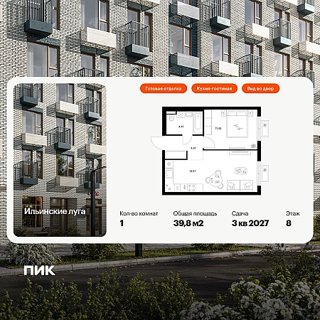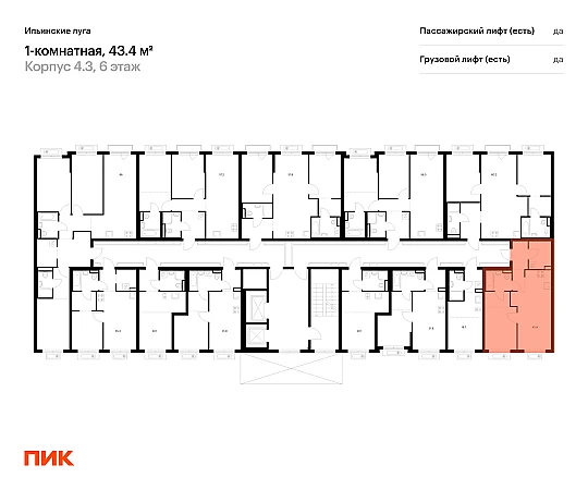 Продаётся 1-комн.квартира площадью 43.40 кв.м на 6 этаже 9 этажного дома (Корпус 4.3, секция 3) проекта ПИК Ильинские луга. Светлый просторный подъезд на уровне земли, функциональная планировка, большие окна, с отделкой.