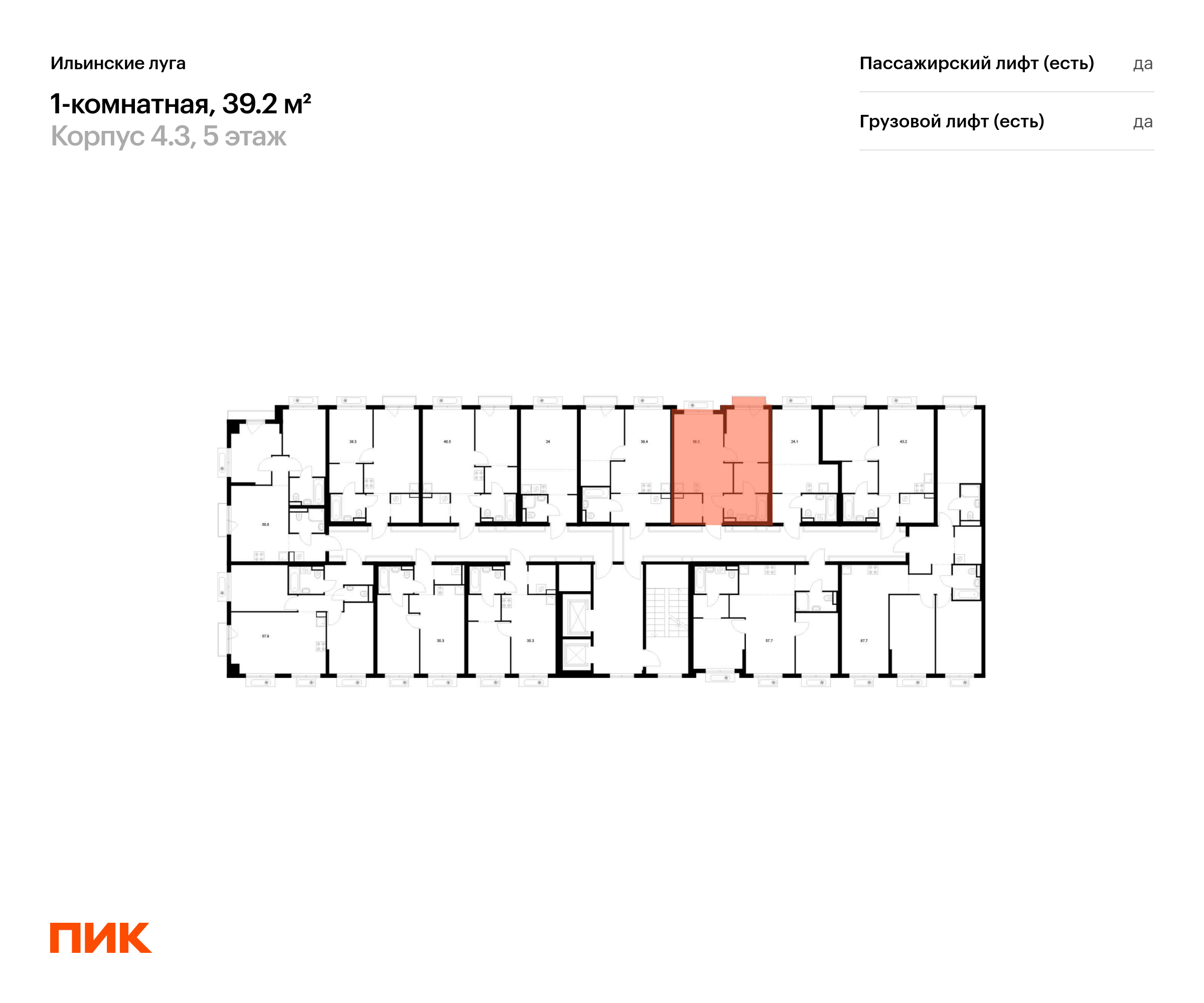 Продаётся 1-комн.квартира площадью 39.20 кв.м на 5 этаже 9 этажного дома (Корпус 4.3, секция 1) проекта ПИК Ильинские луга. Светлый просторный подъезд на уровне земли, функциональная планировка, большие окна, с отделкой.