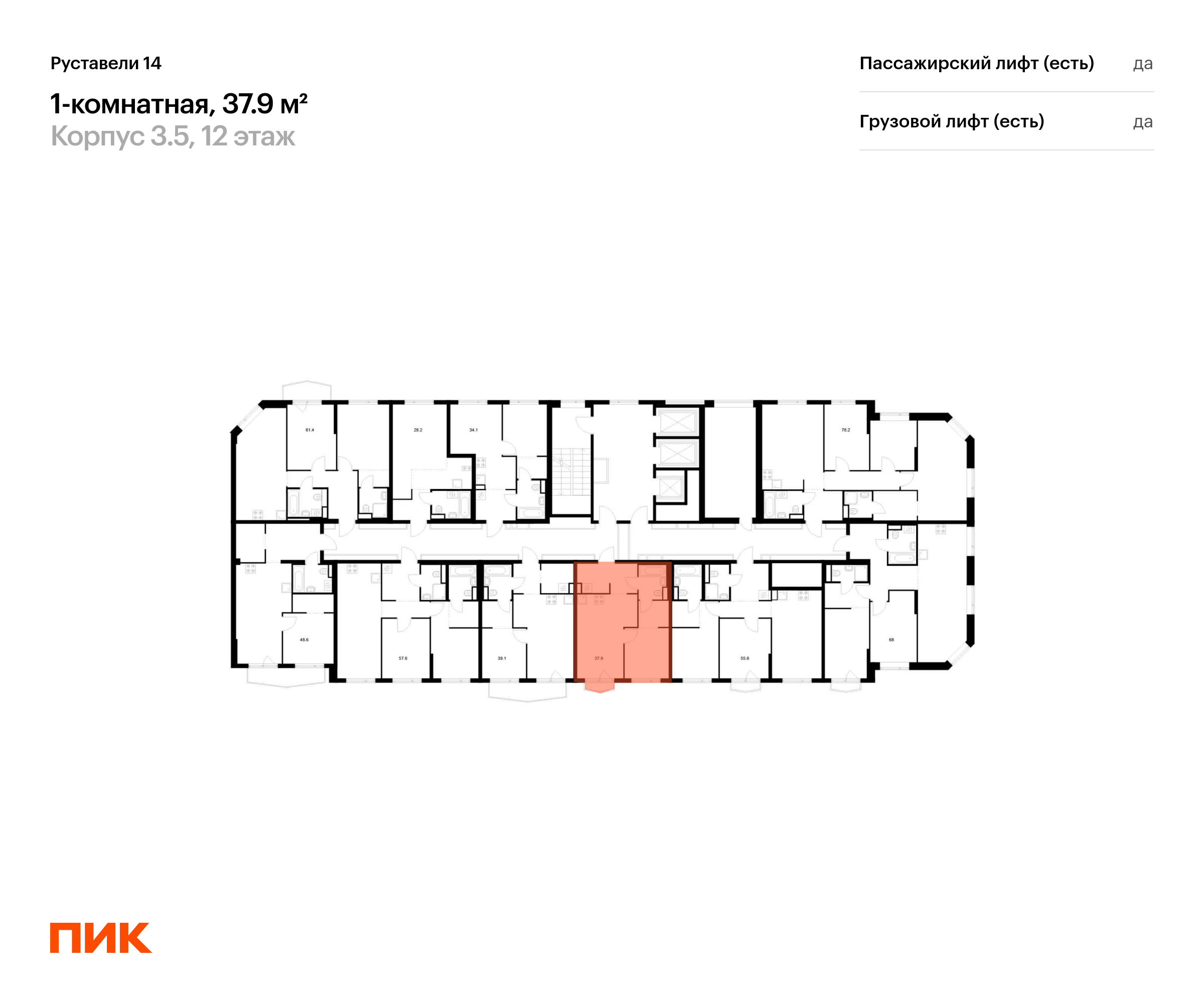 Продаётся 1-комн.квартира площадью 37.90 кв.м на 12 этаже 21 этажного дома (Корпус 3.5, секция 1) проекта ПИК Руставели 14. Светлый просторный подъезд на уровне земли, функциональная планировка, большие окна, с отделкой.