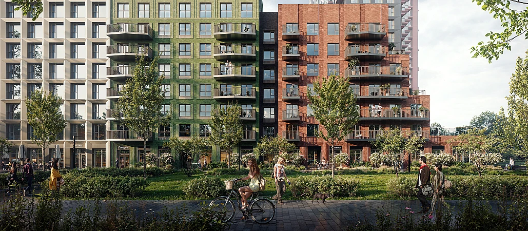 В проекте 18 домов с подземным паркингом и кладовыми, два детских сада и школа. Между домами появятся уютные дворы-парки без машин: с зелёными газонами, кустарниками и деревьями. В безопасных подъездах можно будет оставить велосипед или коляску. На первых этажах откроются кафе, магазины, пекарни и другие сервисы — за кофе и завтраком можно будет просто спуститься на лифте.