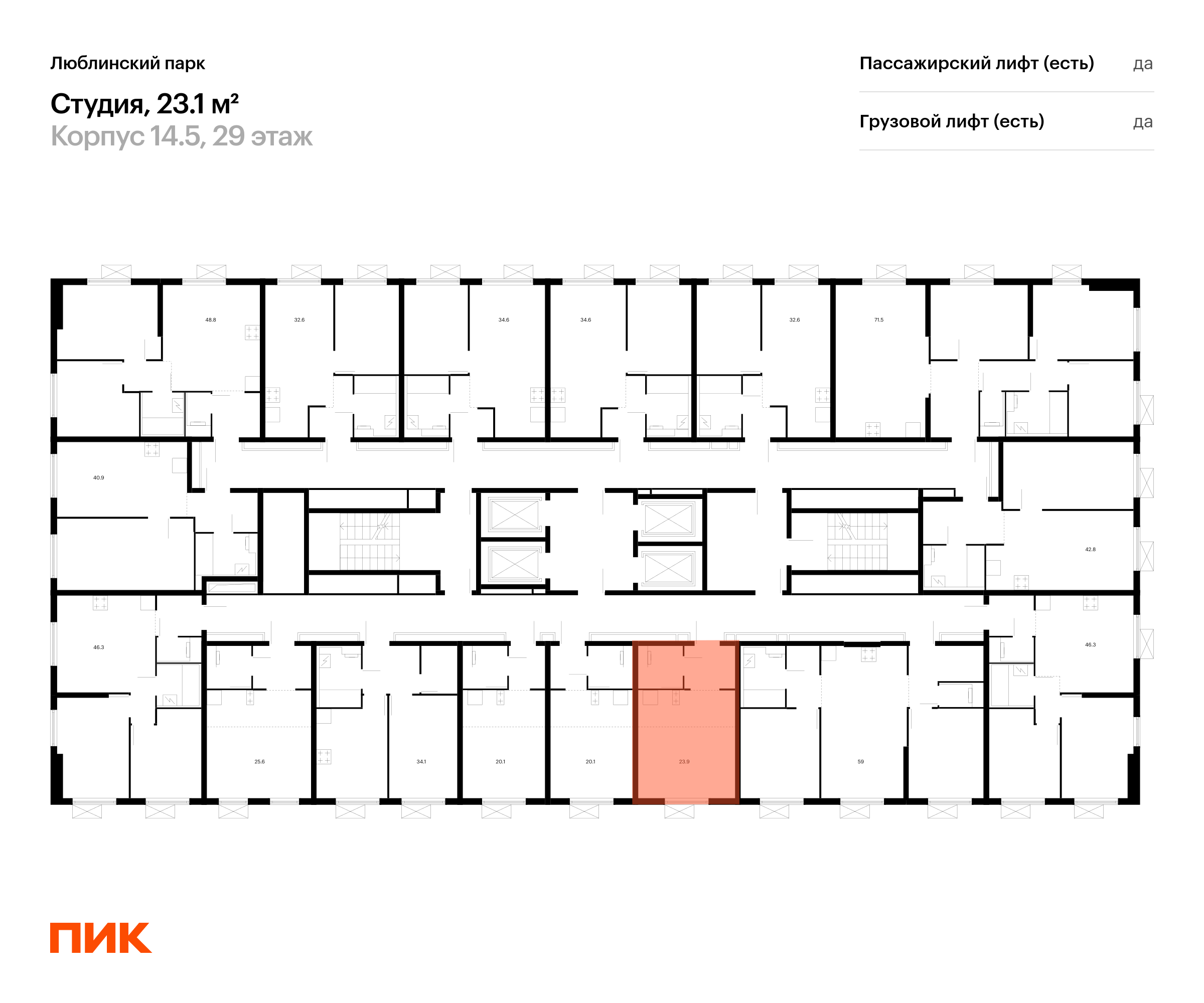 Продаётся квартира-студия площадью 23.10 кв.м на 29 этаже 33 этажного дома (Корпус 14.5, секция 3) проекта ПИК Люблинский парк. Светлый просторный подъезд на уровне земли, функциональная планировка, большие окна, с отделкой.