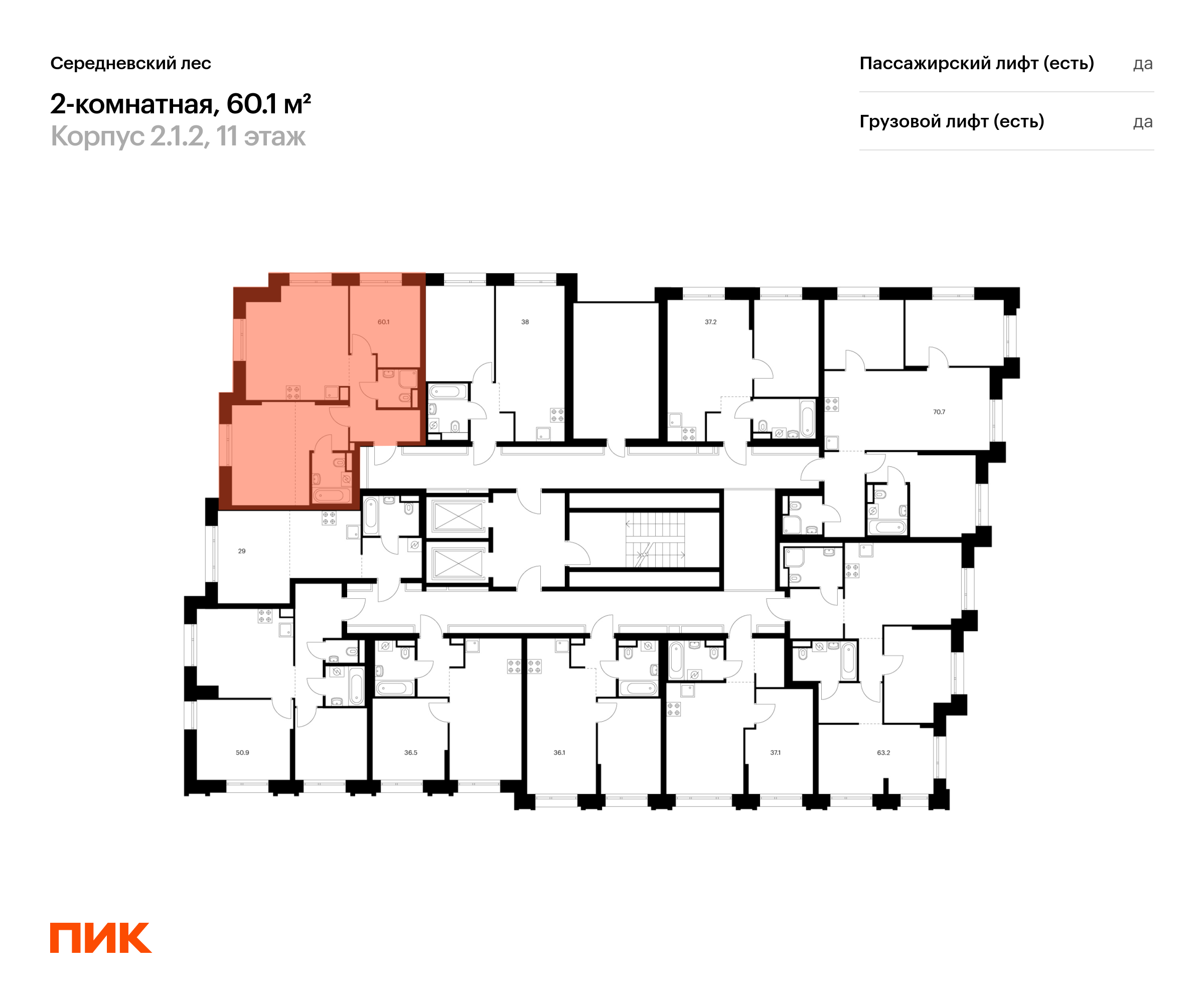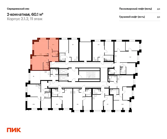 Продаётся 2-комн.квартира площадью 60.10 кв.м на 11 этаже 16 этажного дома (Корпус 2.1.2, секция 2) проекта ПИК Середневский лес. Светлый просторный подъезд на уровне земли, функциональная планировка, большие окна, с отделкой.
