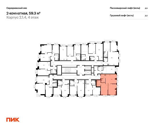 Продаётся 2-комн.квартира площадью 59.30 кв.м на 4 этаже 16 этажного дома (Корпус 2.1.4, секция 4) проекта ПИК Середневский лес. Светлый просторный подъезд на уровне земли, функциональная планировка, большие окна, с отделкой.
