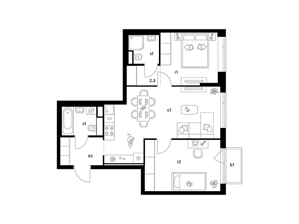 · Квартиры с различными балконами, террасами, окнами в пол.