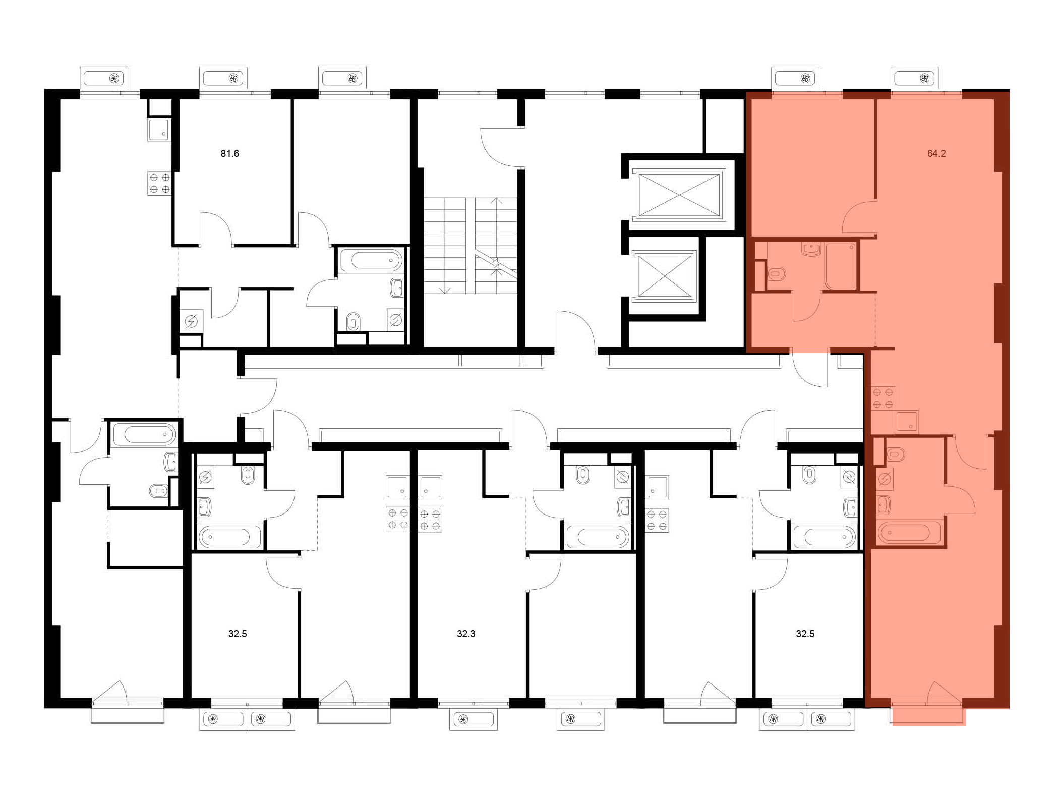 Купить 2к квартиру 64 м² в ЖК Яуза парк