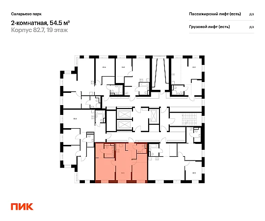 Продаётся 2-комн.квартира площадью 54.50 кв.м на 19 этаже 24 этажного дома (Корпус 82.7, секция 7) проекта ПИК Саларьево парк. Светлый просторный подъезд на уровне земли, функциональная планировка, большие окна, с отделкой.