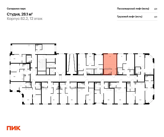 Продаётся квартира-студия площадью 28.10 кв.м на 12 этаже 16 этажного дома (Корпус 82.2, секция 2) проекта ПИК Саларьево парк. Светлый просторный подъезд на уровне земли, функциональная планировка, большие окна, с отделкой.