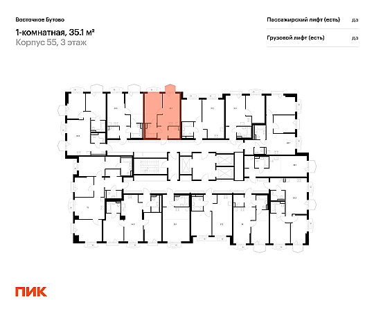 Продаётся 1-комн.квартира площадью 35.10 кв.м на 3 этаже 25 этажного дома (Корпус 55, секция 1) проекта ПИК Восточное Бутово. Светлый просторный подъезд на уровне земли, функциональная планировка, большие окна, с отделкой.