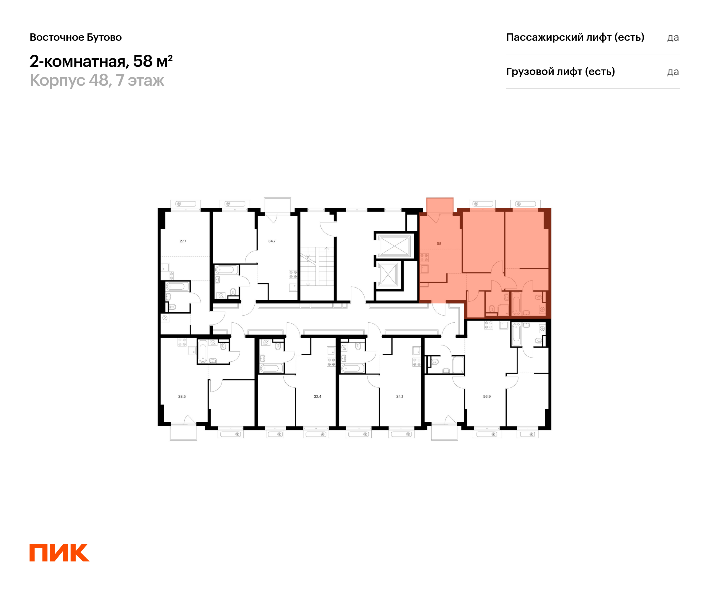 Продаётся 2-комн.квартира площадью 58.00 кв.м на 7 этаже 15 этажного дома (Корпус 48, секция 3) проекта ПИК Восточное Бутово. Светлый просторный подъезд на уровне земли, функциональная планировка, большие окна, с отделкой.