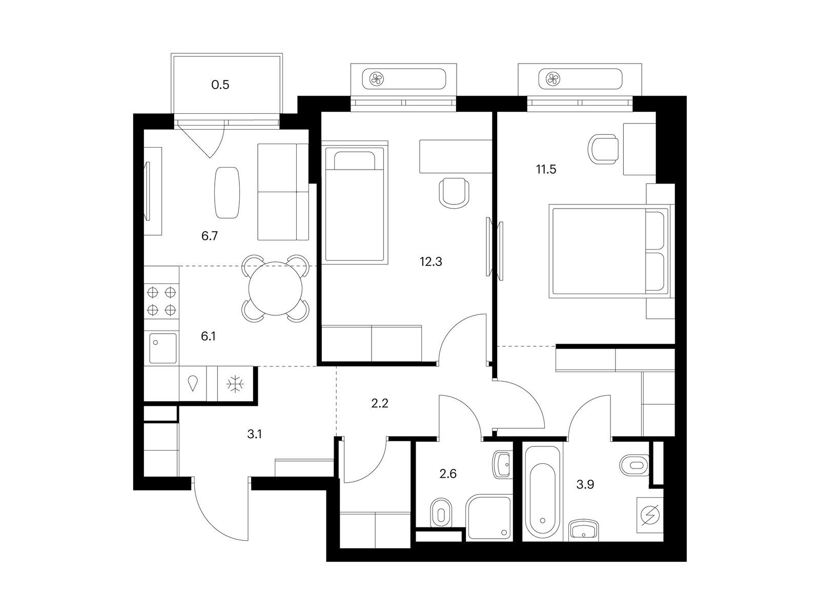 Купить 2к квартиру 58 м² в Восточное Бутово