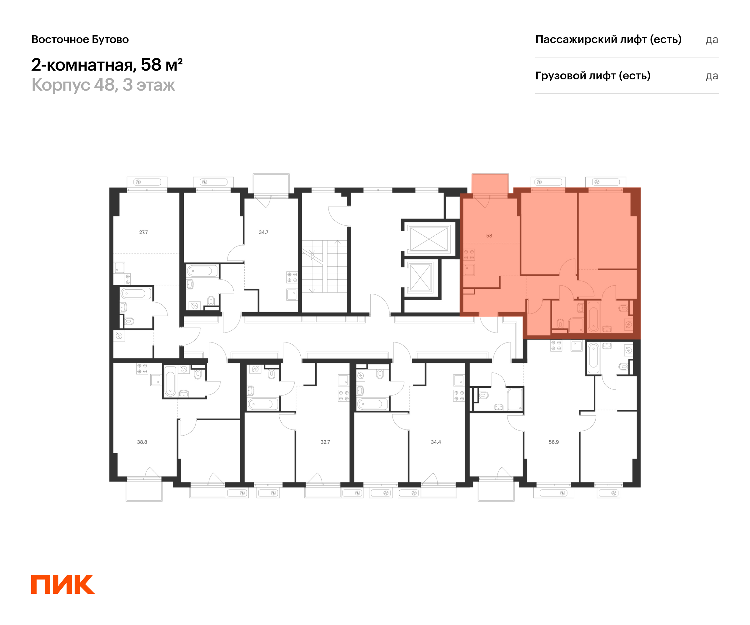 Продаётся 2-комн.квартира площадью 58.00 кв.м на 3 этаже 15 этажного дома (Корпус 48, секция 3) проекта ПИК Восточное Бутово. Светлый просторный подъезд на уровне земли, функциональная планировка, большие окна, с отделкой.