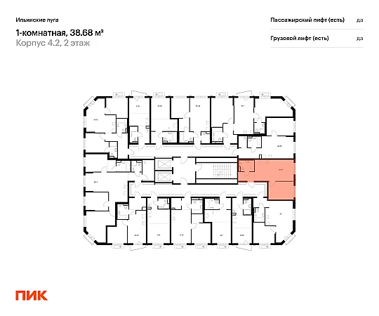 Продаётся 1-комн.квартира площадью 38.68 кв.м на 2 этаже 9 этажного дома (Корпус 4.2, секция 2) проекта ПИК Ильинские луга. Светлый просторный подъезд на уровне земли, функциональная планировка, большие окна, с отделкой.