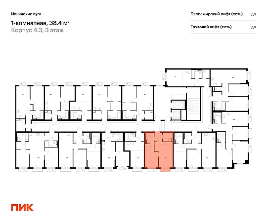Продаётся 1-комн.квартира площадью 38.40 кв.м на 3 этаже 9 этажного дома (Корпус 4.3, секция 4) проекта ПИК Ильинские луга. Светлый просторный подъезд на уровне земли, функциональная планировка, большие окна, с отделкой.