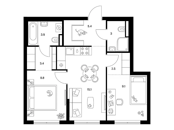 Купить 2к квартиру 52 м² в Ильинские луга