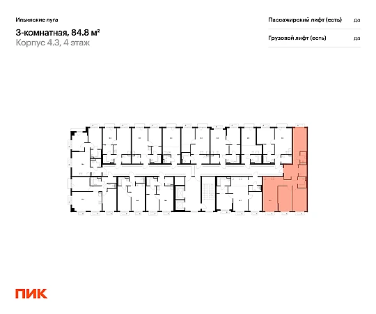 Продаётся 3-комн.квартира площадью 84.80 кв.м на 4 этаже 9 этажного дома (Корпус 4.3, секция 1) проекта ПИК Ильинские луга. Светлый просторный подъезд на уровне земли, функциональная планировка, большие окна, с отделкой.