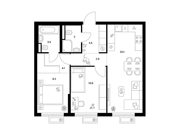 Продаётся 2-комн.квартира площадью 56.90 кв.м на 8 этаже 9 этажного дома (Корпус 4.3, секция 5) проекта ПИК Ильинские луга. Светлый просторный подъезд на уровне земли, функциональная планировка, большие окна, с отделкой.