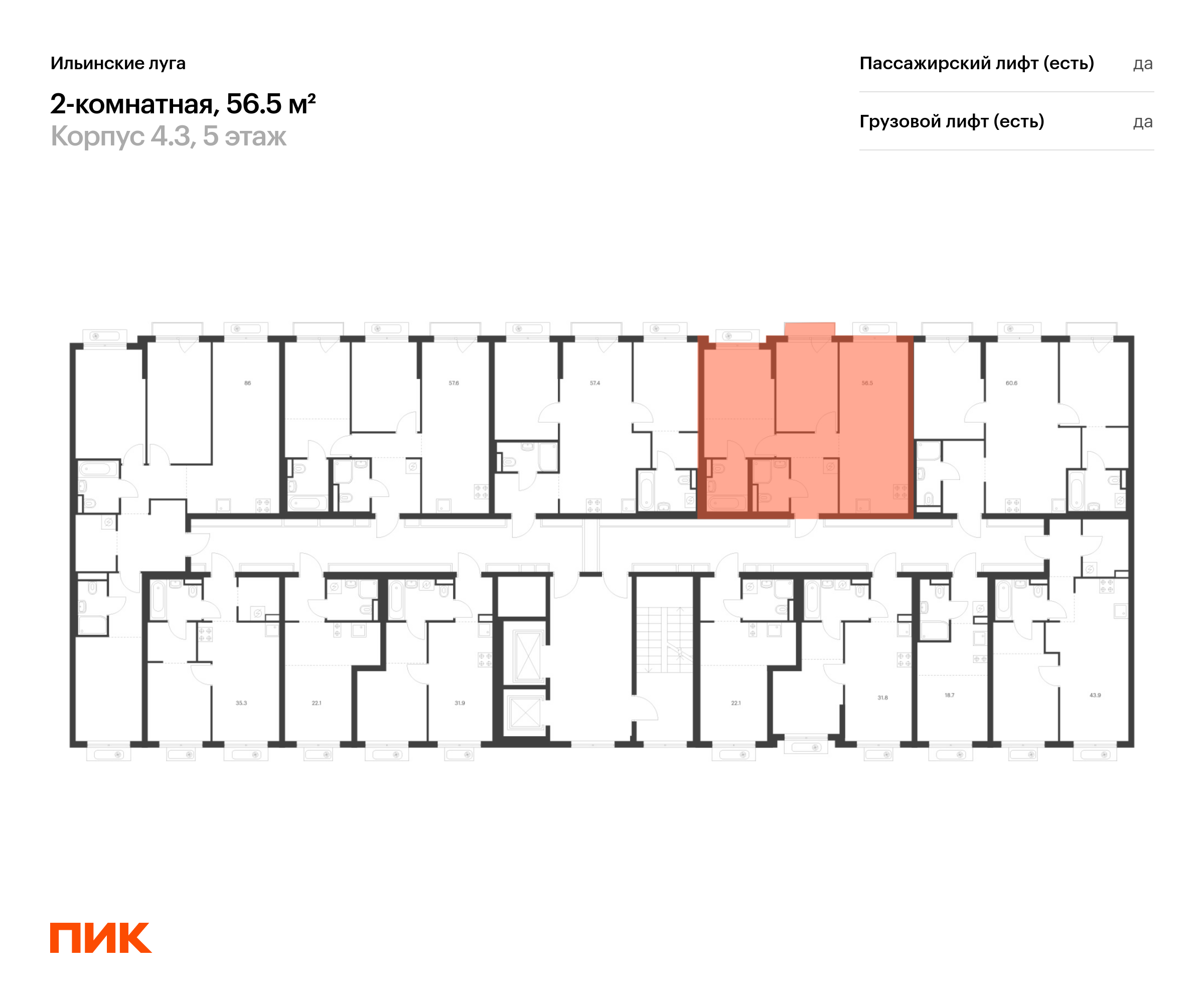 Продаётся 2-комн.квартира площадью 56.50 кв.м на 5 этаже 9 этажного дома (Корпус 4.3, секция 3) проекта ПИК Ильинские луга. Светлый просторный подъезд на уровне земли, функциональная планировка, большие окна, с отделкой.
