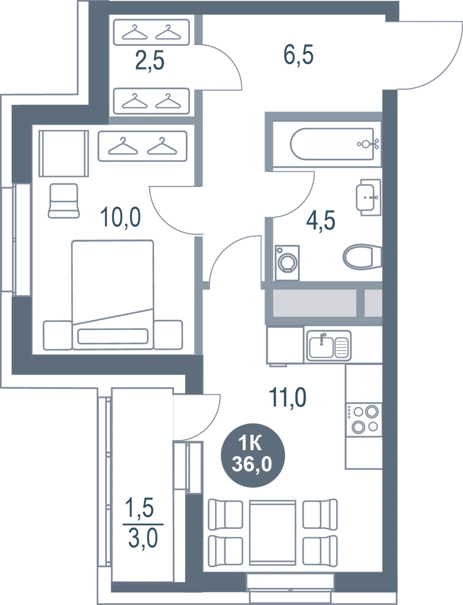 Купить 1к квартиру 39 м² в ЖК Новая Ивантеевка