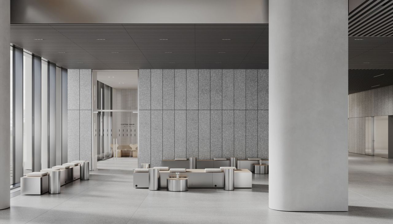 На этажах панорамное остекление. Есть возможность естественного проветривания. Шаг колон 8,6х8,6.
