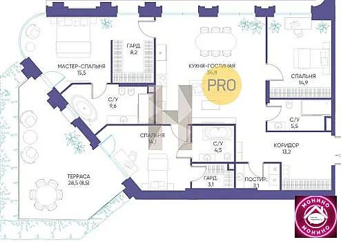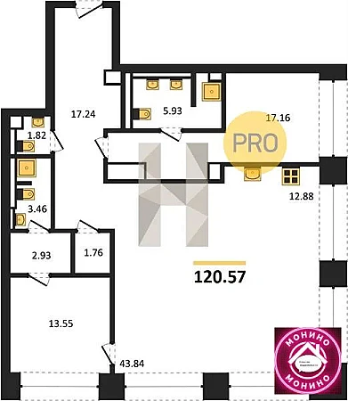 Квартира: 2 к 120,57 кв.м., 7 этаж в комплексе FORUM, 1 очередь, корп.1, сдача: 1кв. , этажей: 13, адрес Садовая-Сухаревская ул., д. 14 стр. 1, Застройщик: MR PRIVATE.