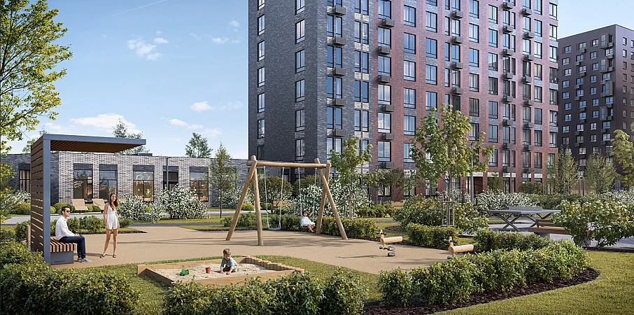 «Молжаниново» — новый жилой комплекс в Северном административном округе Москвы, недалеко от Ленинградского шоссе. Проект разрабатывало архитектурное бюро Gren. Это комфортные монолитные дома с переменной этажностью, эффектными контрастными фасадами и зелеными приватными дворами.Жилой комплекс «Молжаниново» — это место, где каждый маршрут продуман так, чтобы вы проводили больше времени с близкими, а не в дороге.Тут вы получаете и ритм города, и умиротворение природы. Вокруг много просторных и благоустроенных зеленых территорий для активного и спокойного времяпрепровождения. Ставьте паруса в канале имени Москвы, устраивайте пикники в Химкинском лесу или ищите редких птиц в Захарьинской пойме. Жилой комплекс сочетает в себе комфорт городской жизни с преимуществами природы. С одной стороны — московская регистрация, собственная инфраструктура, благоустроенные дворы с детскими площадками и зонами отдыха. С другой — ручей и пруд прямо на территории, а также много леса вокруг.«Молжаниново» — жилой комплекс в Северном административном округе Москвы, недалеко от Ленинградского шоссе. Вокруг — мир, сотканный из зелени и простора. В 13 минутах на авто простирается Химкинский лес — целых 1000 га живописных пейзажей для тех, кто хочет раствориться в тишине. Другая большая природная территория рядом — Захарьинская пойма, которая входит в состав заказника «Долина реки Сходни в Куркино». Здесь несколько экотроп, с которых есть шанс увидеть лесных обитателей: зайцев, ласк, лисиц, ондатр и других животных. А еще тут есть лыжная трасса, места для пикника, велодорожки.Если хочется более активного отдыха на природе, отправляйтесь к каналу имени Москвы и Котовскому заливу, где проводят занятия по парусному спорту. Доехать туда можно за полчаса.Московская регистрация открывает доступ к лучшим школам, медицинским учреждениям и столичным льготам. Здесь вы станете частью динамичного ритма столицы с ее безграничными возможностями. Родители оценят инфраструктуру жилого комплекса: 4 школы и 8 детских садов находятся прямо на территории проекта. Здесь же появится торговый центр, чтобы в выходные всей семьей можно было отправиться на шопинг. Архитекторы из бюро GREN создали проект, который сочетает стильный внешний вид и комфорт для жизни. Современные монолитные дома с разной высотой этажей и выразительными фасадами выполнены в контрастных тонах. Для отделки используется семь видов кирпича — от темных до светлых оттенков. Как яркие акценты выступают композитные панели светлых тонов.Фасады домов продуманы до мелочей: окна, закрытые балконы с панорамным остеклением и декоративные элементы образуют гармоничный рисунок. Линии фасадов оживляют вставки, которые отличаются по цвету, добавляя динамику и стиль.Здания имеют прямоугольную форму и образуют закрытые дворы, где жители могут наслаждаться приватностью и спокойствием.Этот жилой комплекс — не просто пространство для жизни, а целый мир, где каждая деталь благоустройства создавалась с любовью и вниманием к тому, что действительно делает дни особенными. За концепцию, в которой природа соединяется с архитектурой, отвечает архитектурное бюро GREN. Здесь есть зоны отдыха, где приятно наслаждаться книгой. Еще одно место, где хочется проводить как можно больше времени, — яблоневый сад. Здесь есть 