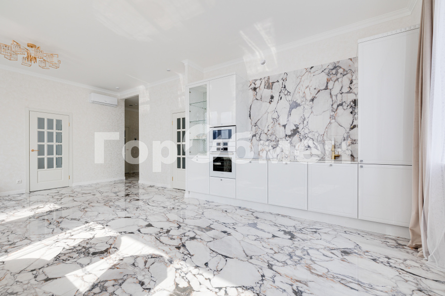 посудомоечная машина, индукционная плита, встроенный духовой шкаф, микроволновая печь, холодильник Liebherr. Обеденный стол большой с мраморной столешницей, полукресла дизайнерские Италия. Гостиная с диваном и журнальными столиками.