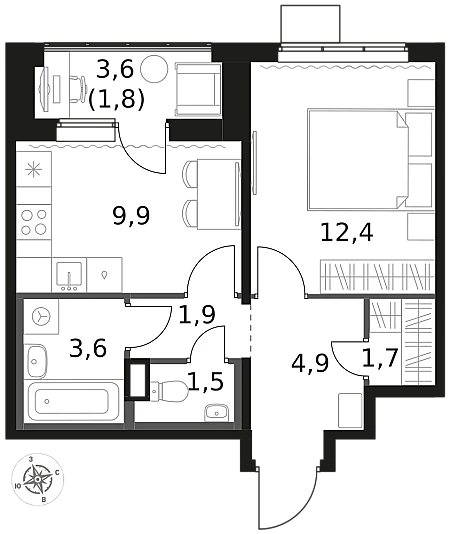 Купить 1к квартиру 36 м² в ЖК 1‑й Донской