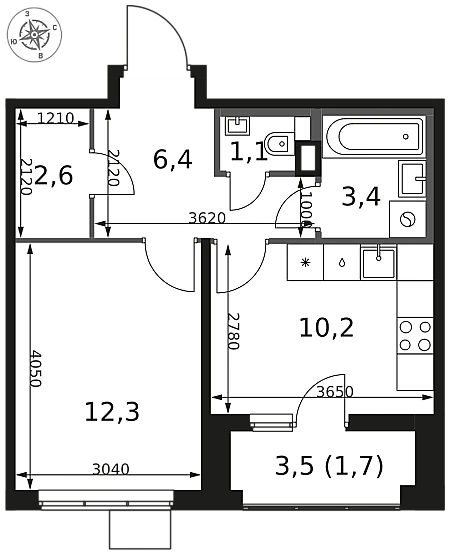 Купить 1к квартиру 34 м² в ЖК 1‑й Донской