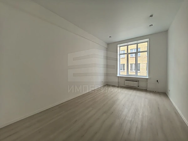 На стенах поклеены обои под покраску, на полу постелен ламинат с плинтусами и откосами. Есть вытяжная вентиляция в санузле и на кухне, выходы хв/гв, место под раковину на кухне. Кроме того, в помещениях уже есть выключатели освещения, розетки для бытовой техники и роутера, а также сделаны закладные для оптоволокна для интернета.