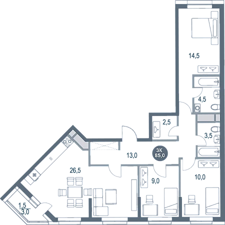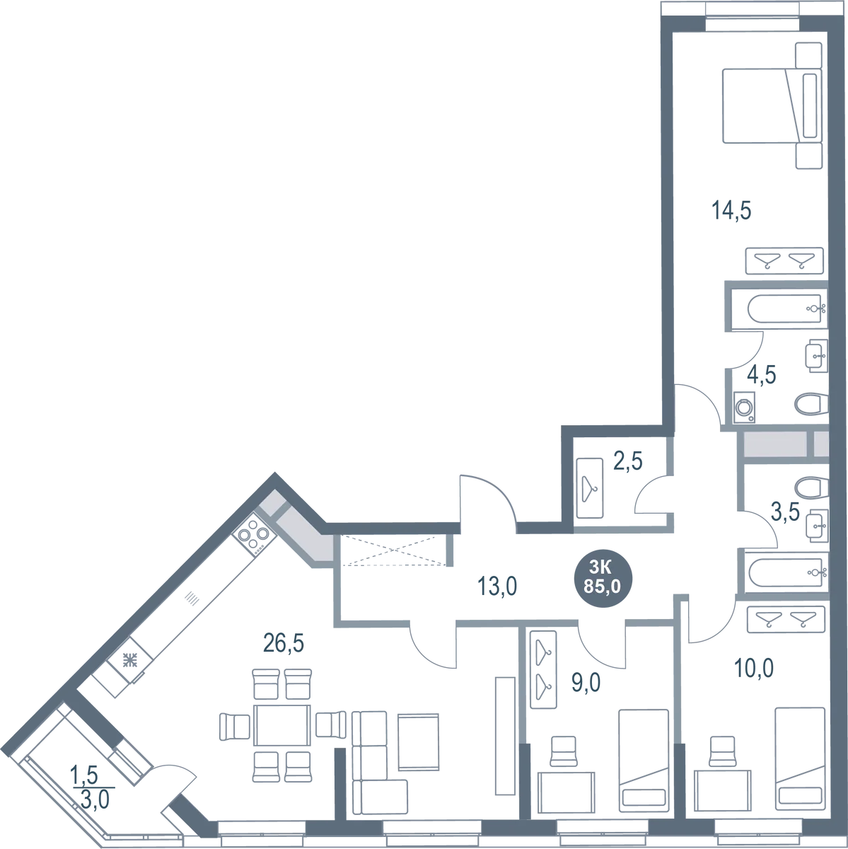 Купить 3к квартиру 85 м² в Квартал "Новые Котельники"