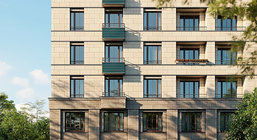 В рамках проекта «Метроном» строится 2 квартала переменной высотности, детский сад и коммерческие павильоны, которые сформируют новое лицо 1-го Иртышского проезда. Разноэтажные секции высотой от 28 до 100 метров объединит стилобат. Крупная подрезка в верхней части домов образует запоминающийся силуэт кварталов. Благодаря ей здания будут походить на стильных и современных людей, которые разглядывают интересные и важные городские объекты или общаются друг с другом.Фасады домов облицованы керамогранитом с фактурой камня и отсылают к архитектуре XVIII-XIX веков. Тёмный оттенок и крупная нарезка нижней части добавят первым этажам основательности. Кропотливо проработанная архитектура сделает здания элегантными и привлекающими внимание. Летние помещения в нашем проекте будут иметь 90% квартир. На крышах секций ниже 50 метров архитекторы Брусники расположили открытые террасы, на которых приятно проводить время, встречая рассветы или провожая закаты.