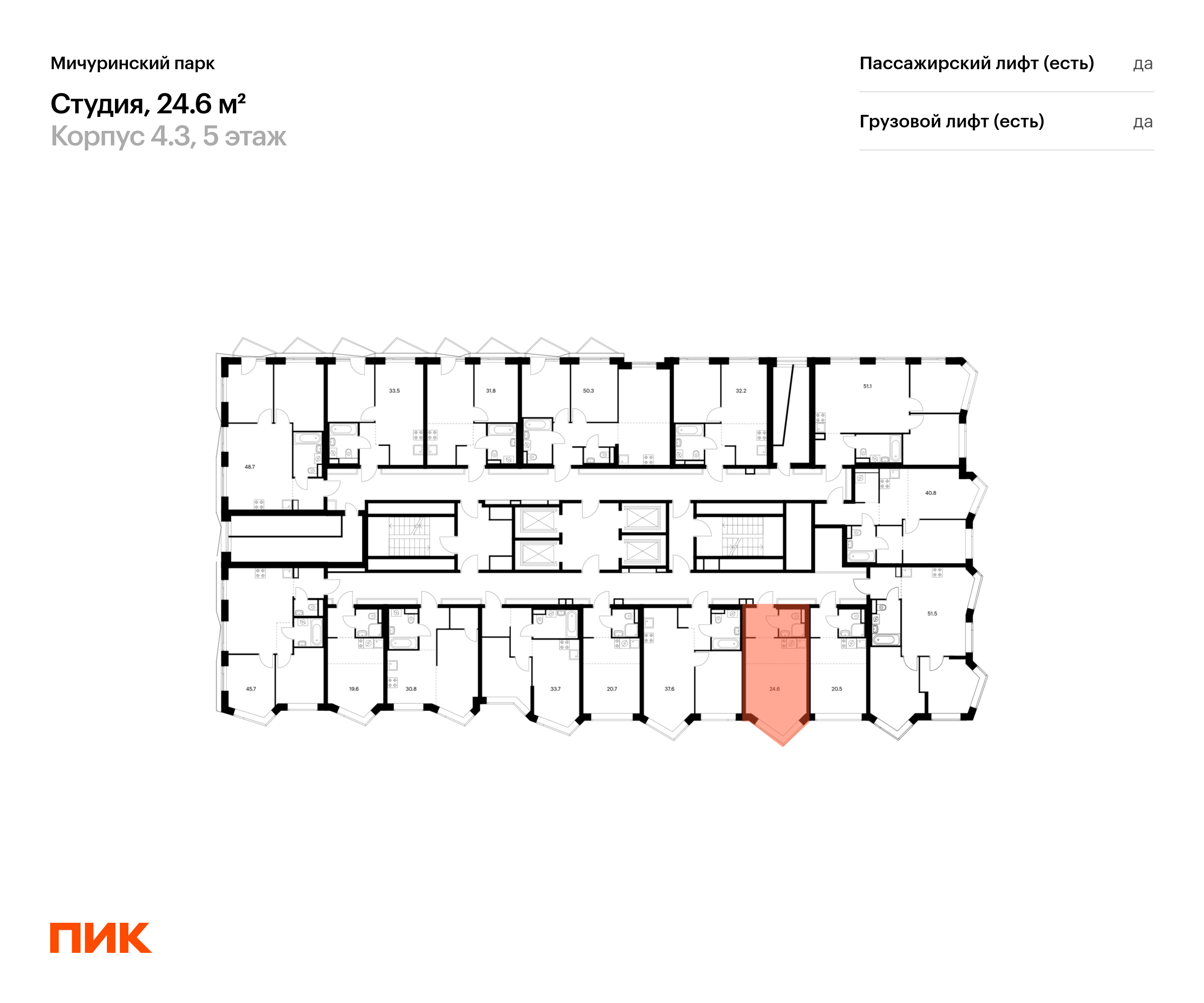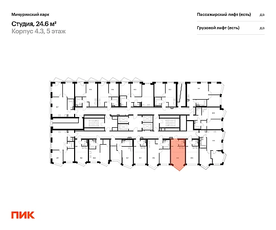 Продаётся квартира-студия площадью 24.60 кв.м на 5 этаже 31 этажного дома (Корпус 4.3, секция 2) проекта ПИК Мичуринский парк. Светлый просторный подъезд на уровне земли, функциональная планировка, большие окна, с отделкой.