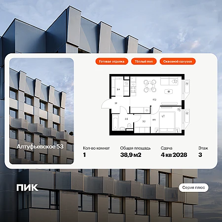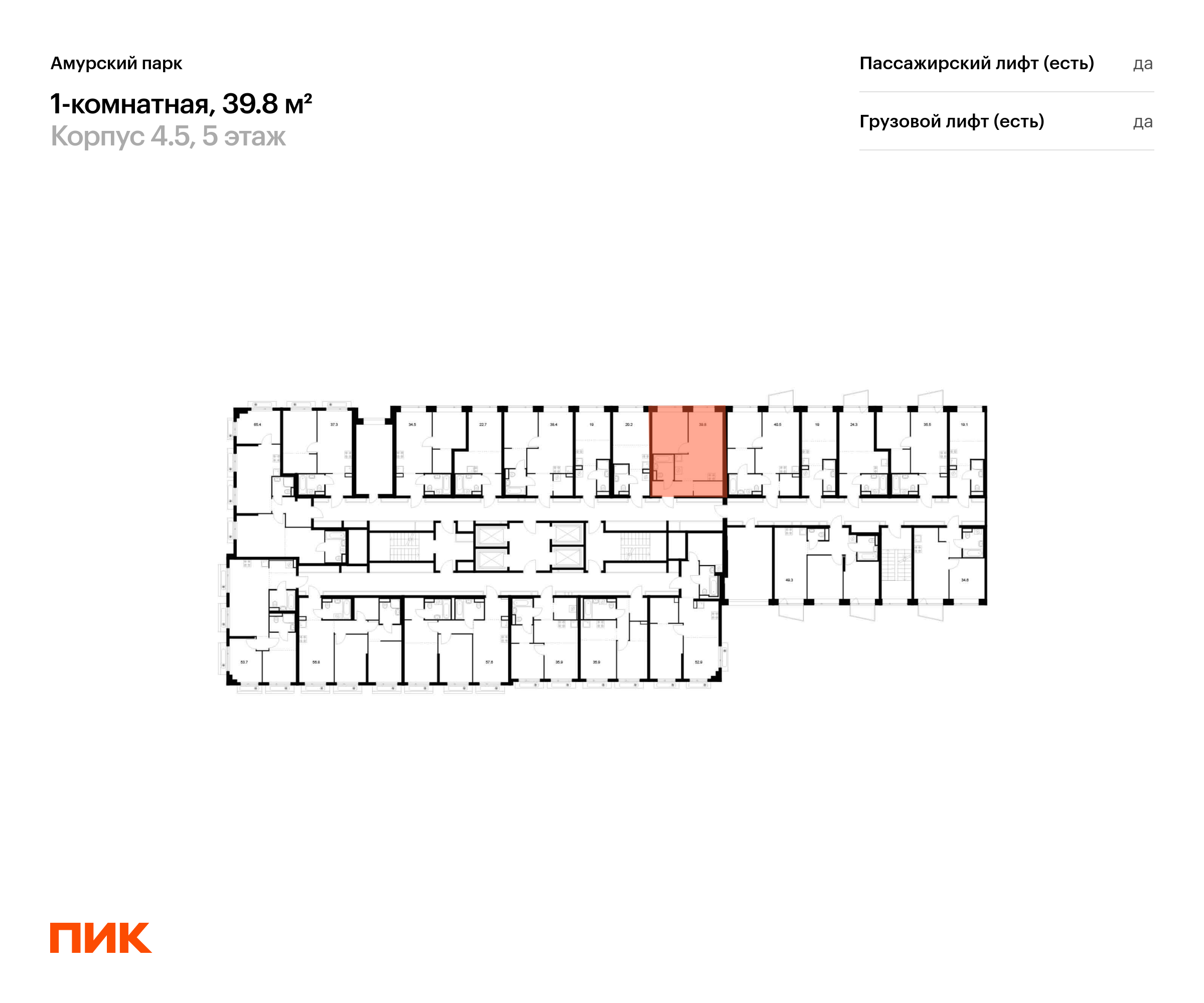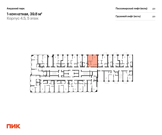 Продаётся 1-комн.квартира площадью 39.80 кв.м на 5 этаже 27 этажного дома (Корпус 4.5, секция 6) проекта ПИК Амурский парк. Светлый просторный подъезд на уровне земли, функциональная планировка, большие окна, с отделкой.
