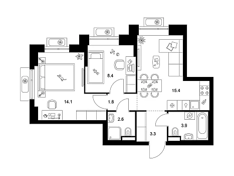 Главная Купить квартиру в Москве и МО 1к квартира 39 м² в ЖК Кит
