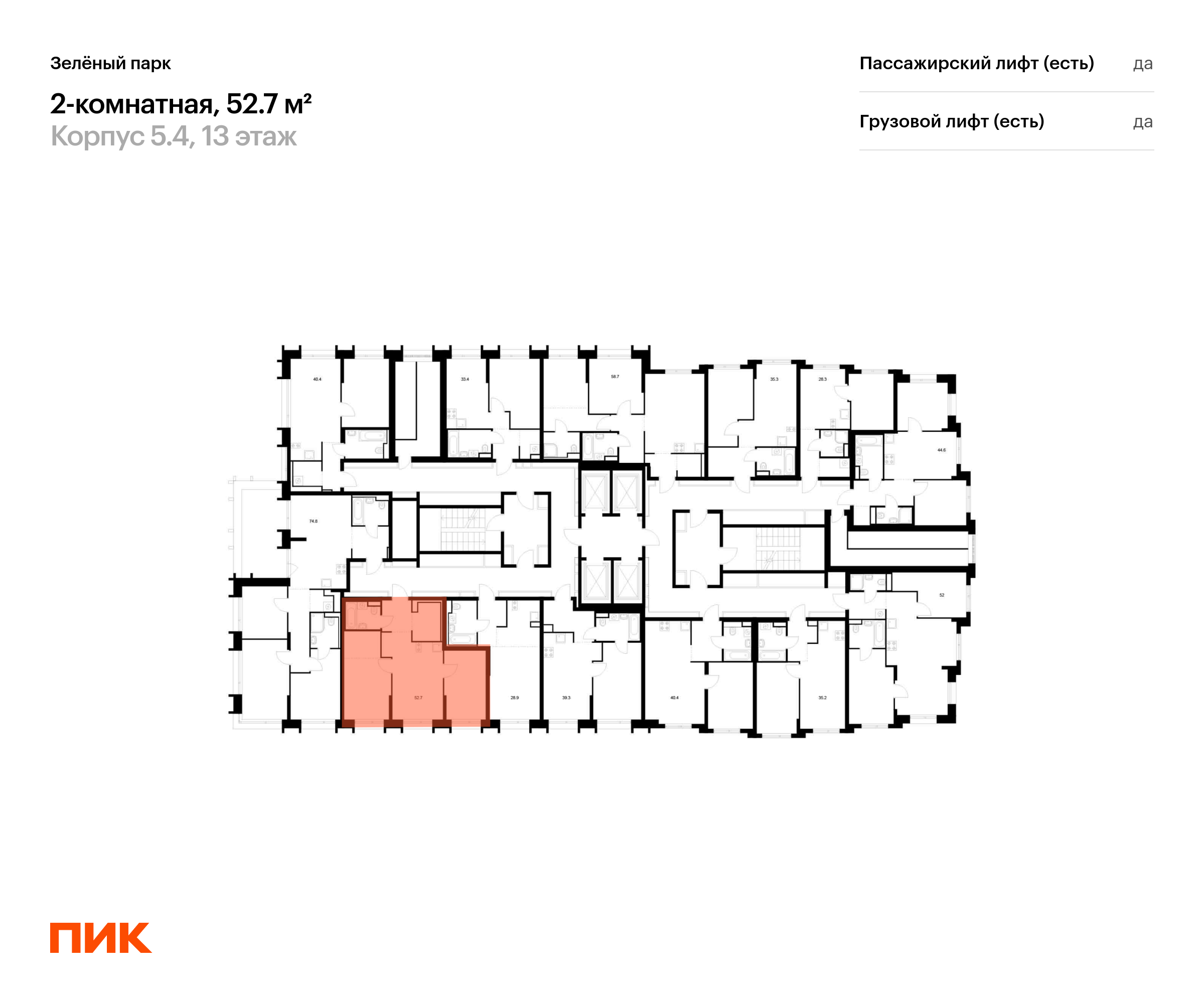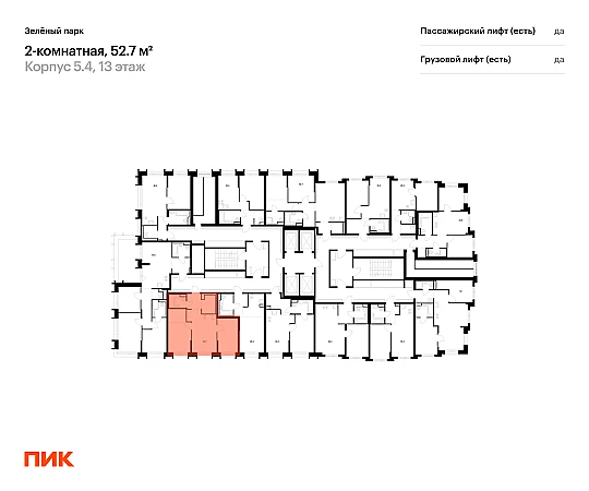 Продаётся 2-комн.квартира площадью 52.70 кв.м на 13 этаже 28 этажного дома (Корпус 5.4, секция 5) проекта ПИК Зелёный парк. Светлый просторный подъезд на уровне земли, функциональная планировка, большие окна, с отделкой.