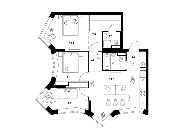 Купить 3к квартиру 72 м² в Мичуринский парк