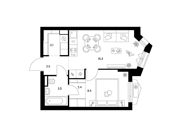 Архитектурную концепцию корпусов 4.2-4.5 разработала российская студия KK ARCHSTUDIO. У каждого корпуса свой характер — его формируют уникальная форма зданий и пластика фасада. Динамичные складки эркеров образуют характерный геометрический рисунок, который поддерживают и дополняют архитектурные детали.