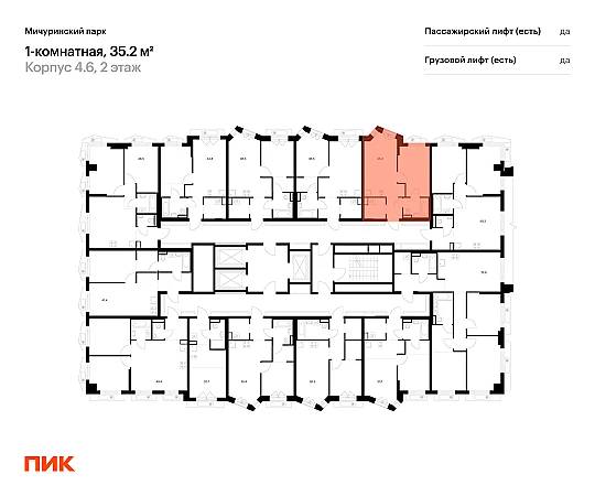 Продаётся 1-комн.квартира площадью 35.20 кв.м на 2 этаже 23 этажного дома (Корпус 4.6, секция 2) проекта ПИК Мичуринский парк. Светлый просторный подъезд на уровне земли, функциональная планировка, большие окна, с отделкой.
