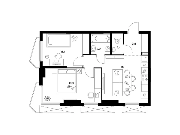 Купить 2к квартиру 52 м² в Мичуринский парк