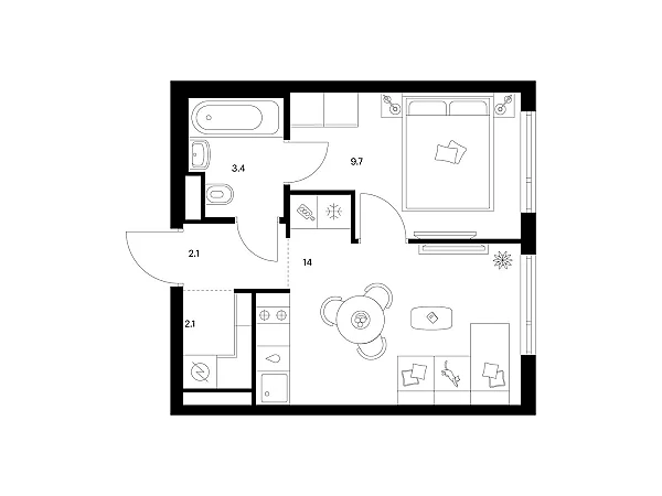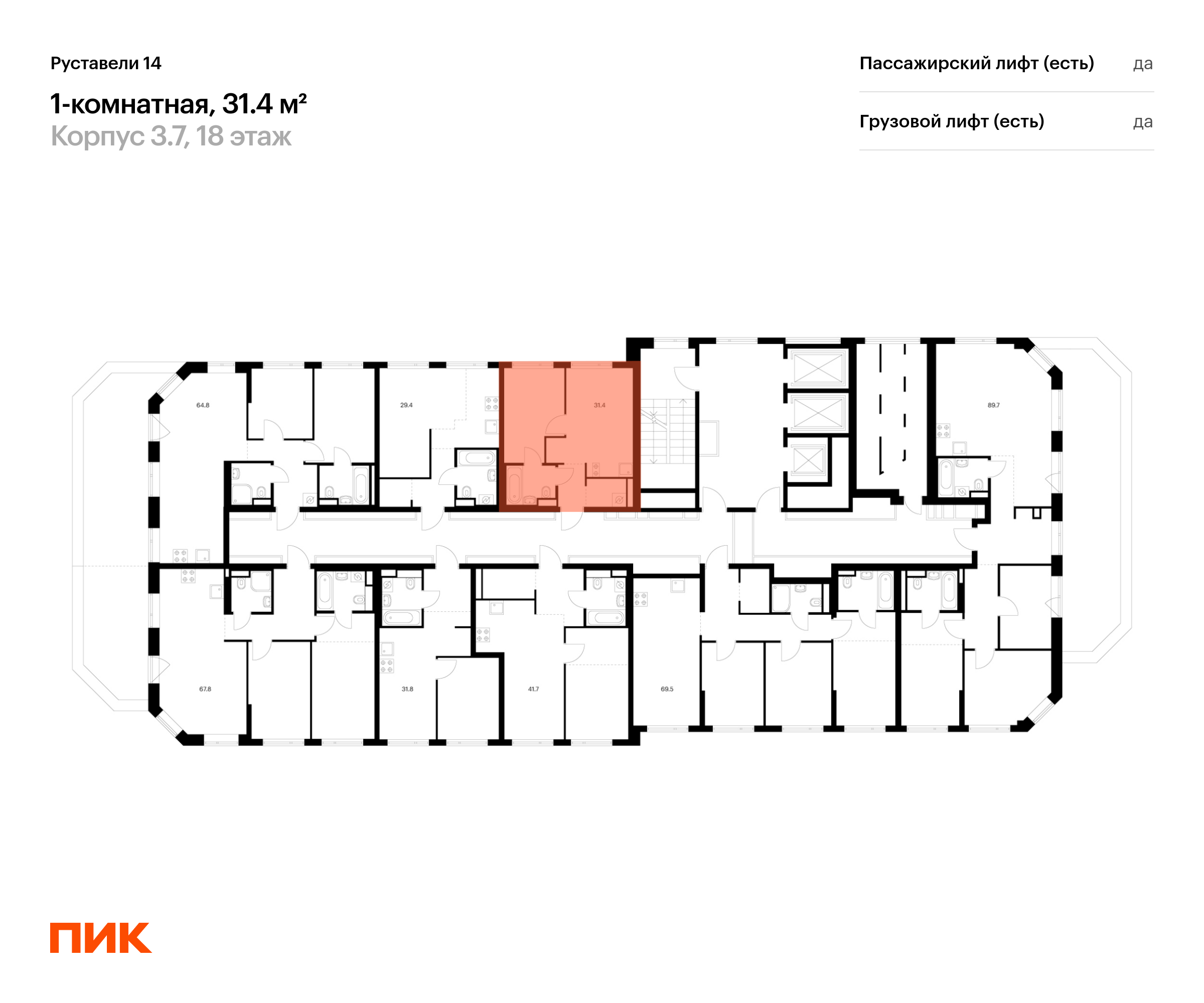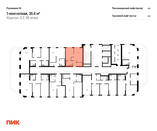 Продаётся 1-комн.квартира площадью 31.30 кв.м на 18 этаже 21 этажного дома (Корпус 3.7, секция 3) проекта ПИК Руставели 14. Светлый просторный подъезд на уровне земли, функциональная планировка, большие окна, с отделкой.
