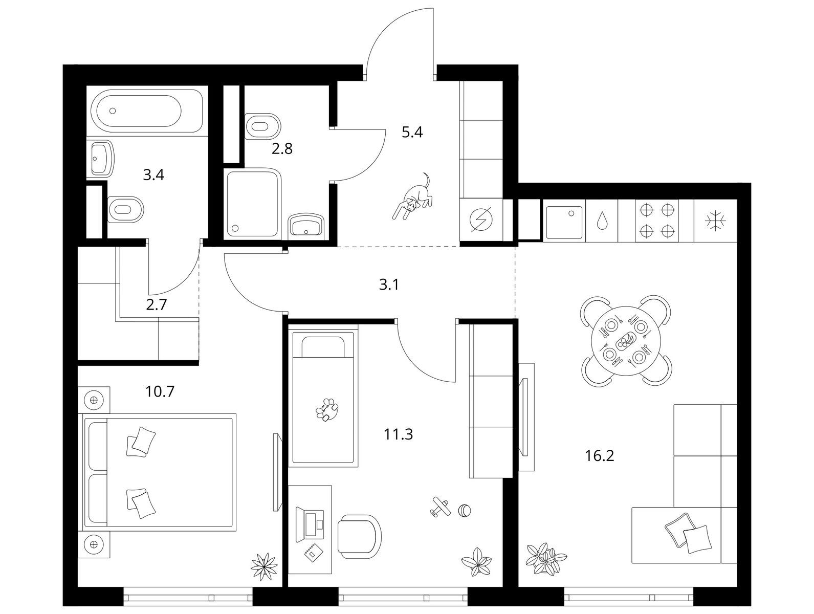 Продаётся 2-комн.квартира площадью 55.40 кв.м на 2 этаже 21 этажного дома (Корпус 3.5, секция 1) проекта ПИК Руставели 14. Светлый просторный подъезд на уровне земли, функциональная планировка, большие окна, с отделкой.
