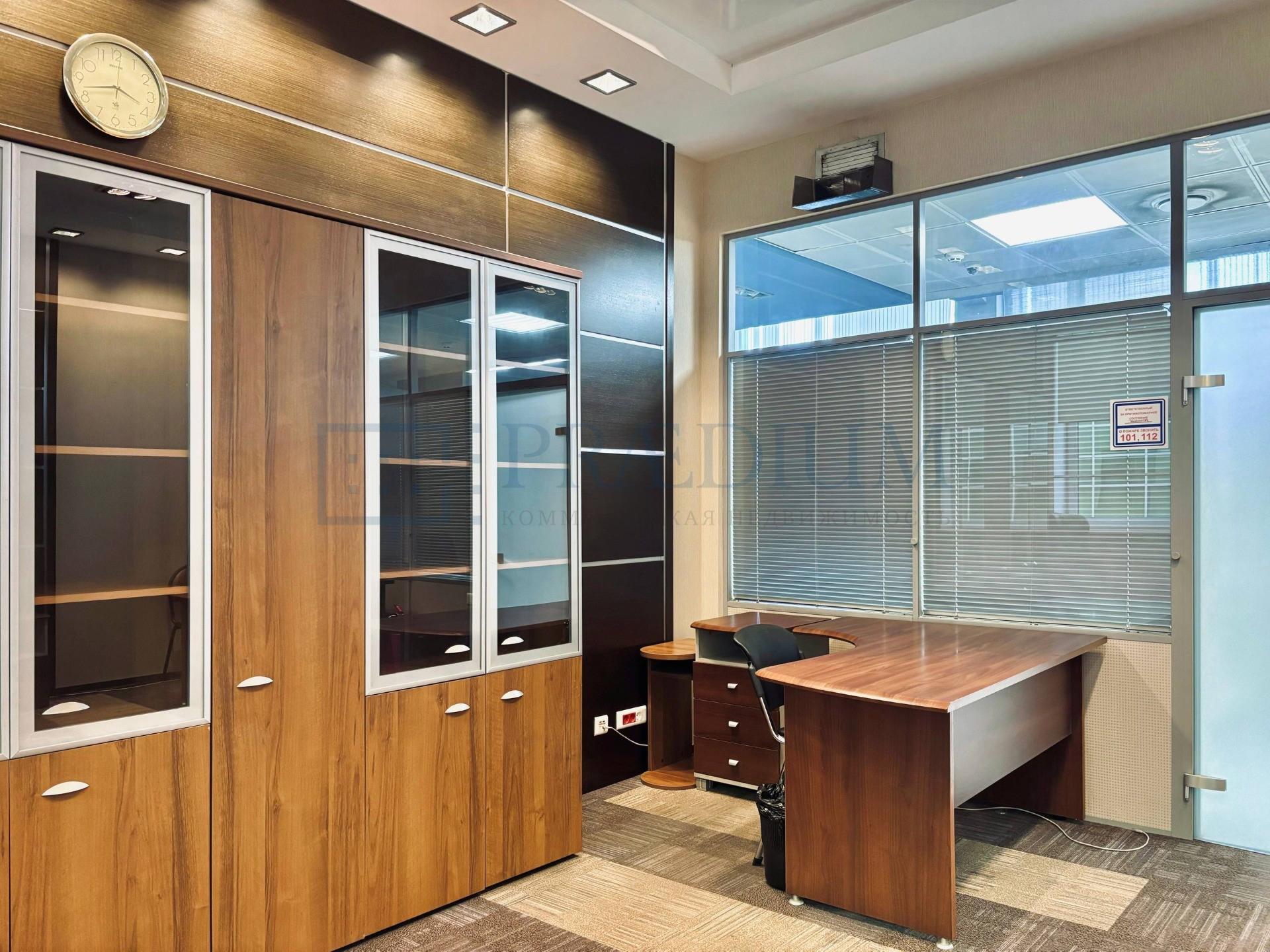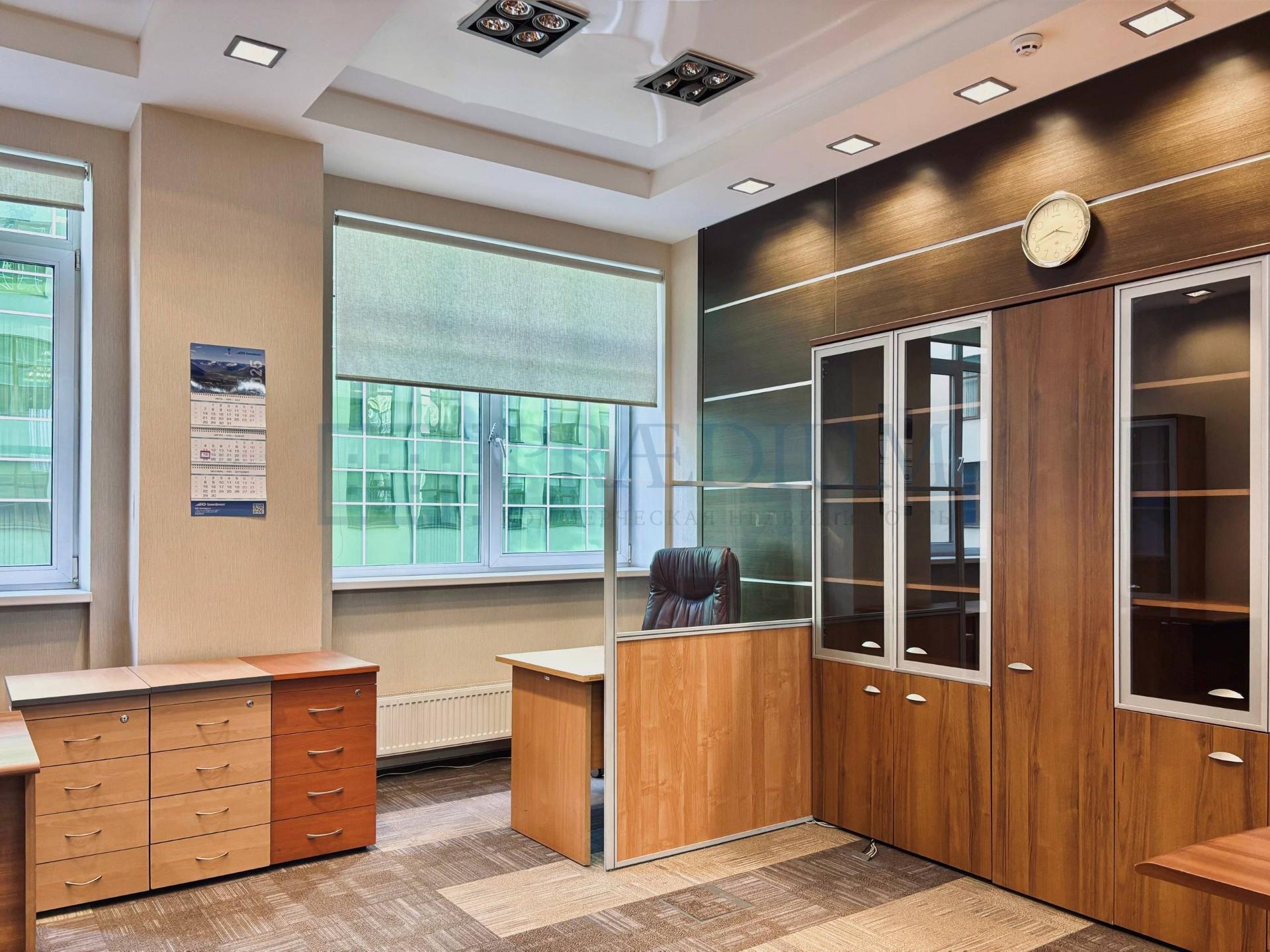 Выполнена офисная отделка, установлена мебель, планировка представляет собой сочетание большой набор открытых пространств и кабинетов. Имеется собственная серверная, кухня, переговорные и с/у.