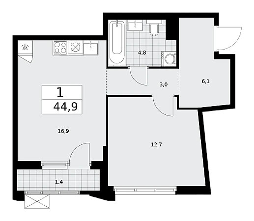 Продаётся 1-комнатная квартира, площадью 44,9 кв. м на 8-м этаже дома комфорт-класса в ЖК "Деснаречье". Квартира с функциональной планировкой: большие окна, высота потолка 2,95 м, балкон.