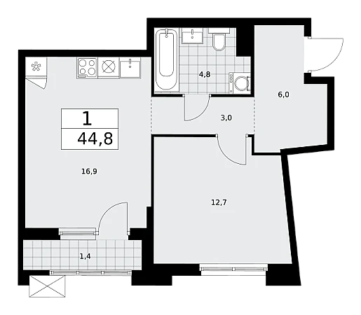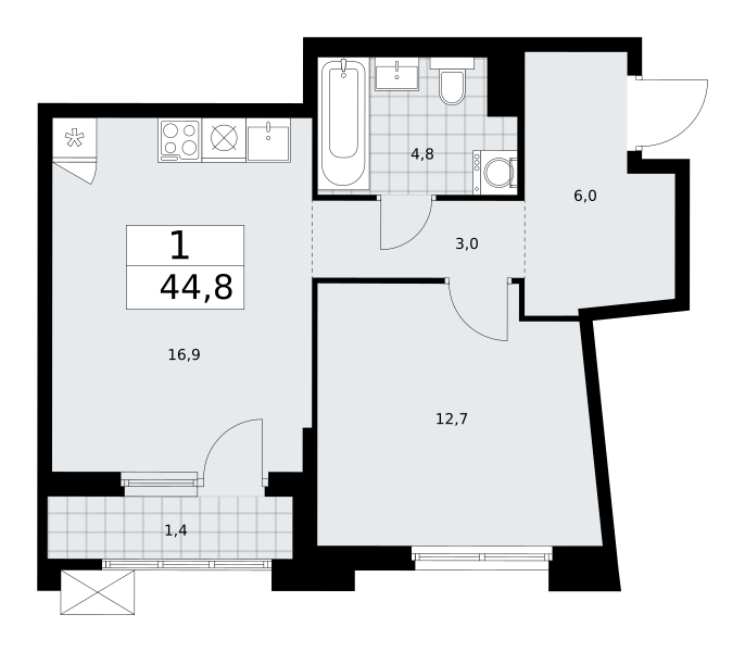 Продаётся 1-комнатная квартира, площадью 44,8 кв. м на 8-м этаже дома комфорт-класса в ЖК "Деснаречье". Квартира с функциональной планировкой: большие окна, высота потолка 2,95 м, балкон.