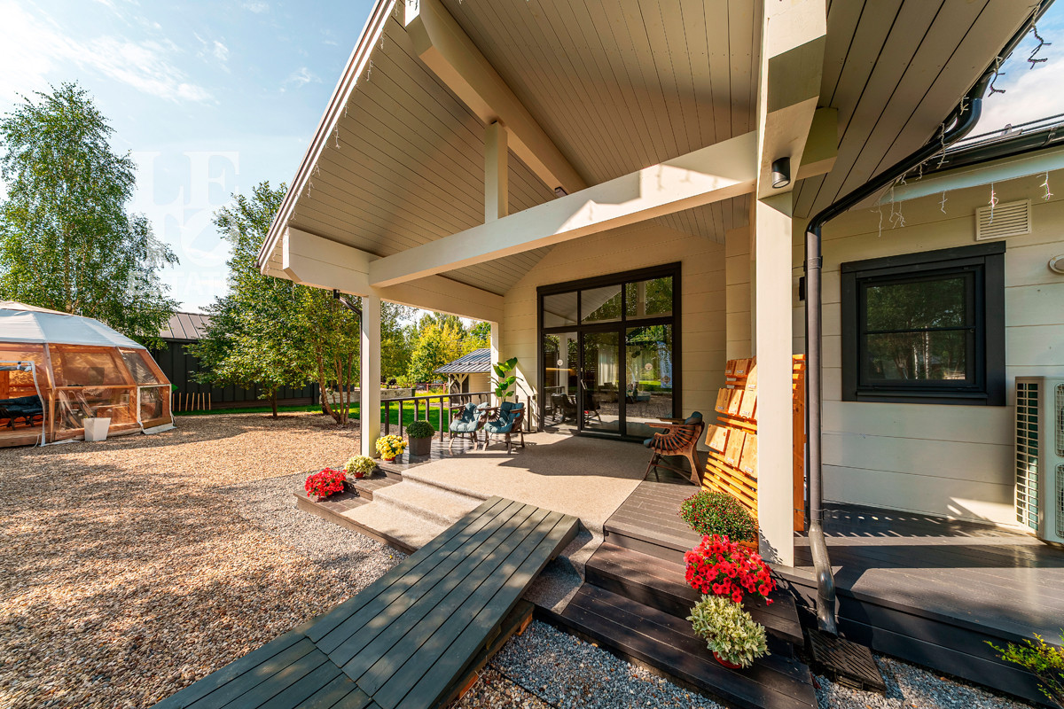 Дом выполнен по уникальному проекту "Луна", в современном стиле, сочетающем в себе актуальную архитектуру и комфортную концепцию для загородной жизни.
