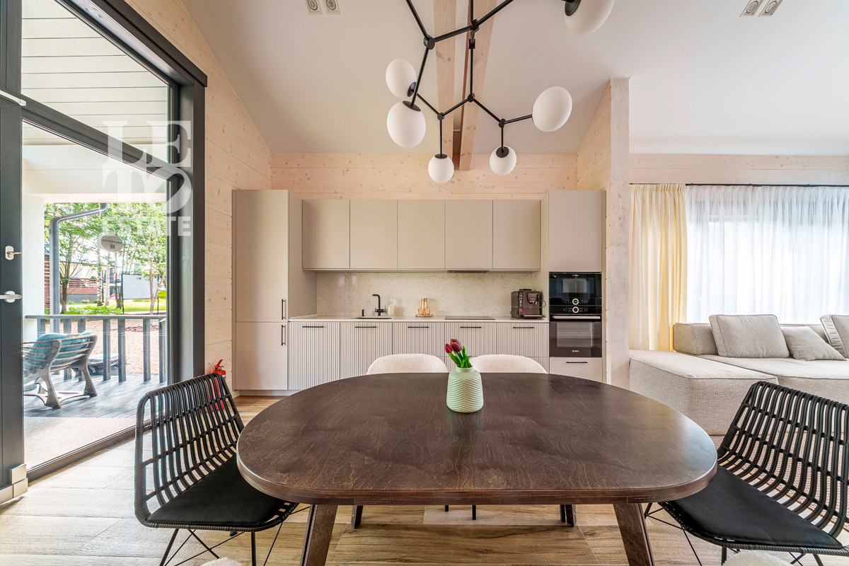 Дом полностью готов к проживанию: сделан дизайнерский ремонт, установлена мебель, сделанная на заказ по дизайн-проекту, установлена вся необходимая техника премиальных марок, освещение от топовых брендов. При внутренней отделке использовались исключительно качественные натуральные материалы. Во всем доме сделаны теплые водяные полы с автоматической системой поддержания температуры. Также дом оснащен системой кондиционирования, приточно-вытяжной вентиляции с дополнительным увлажнением воздуха по всему дому.