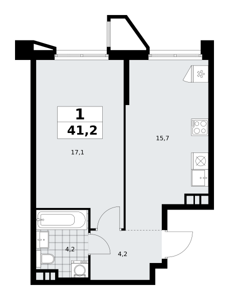 Продаётся 1-комнатная квартира, площадью 41,2 кв. м на 4-м этаже дома комфорт-класса в ЖК "Прокшино". Квартира с функциональной планировкой: большие окна, высота потолка 2,95 м.