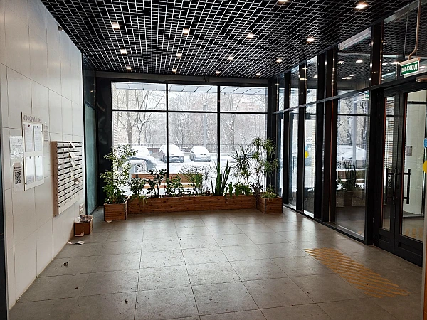 Монолитный новый дом с подземным паркингом. Охраняемая территория. Во входных группах предусмотрены помещения для консьержа и колясочные. На первых этажах магазины, пекарня, стоматология, салон красоты. На придомовой территории размещены детские и игровые площадки, площадки для отдыха и спорта. Озелененная придомовая территория, высажены деревья ,кустарники, разбиты газоны и цветники.