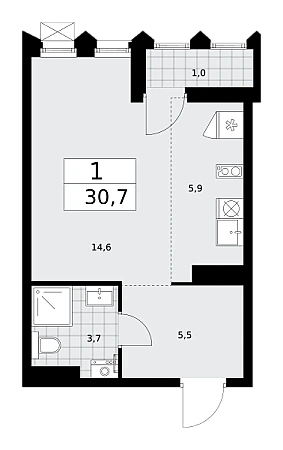 Продаётся квартира-студия, площадью 30,7 кв. м на 13-м этаже дома комфорт-класса в ЖК "Деснаречье". Квартира с функциональной планировкой: большие окна, высота потолка 2,95 м, балкон.