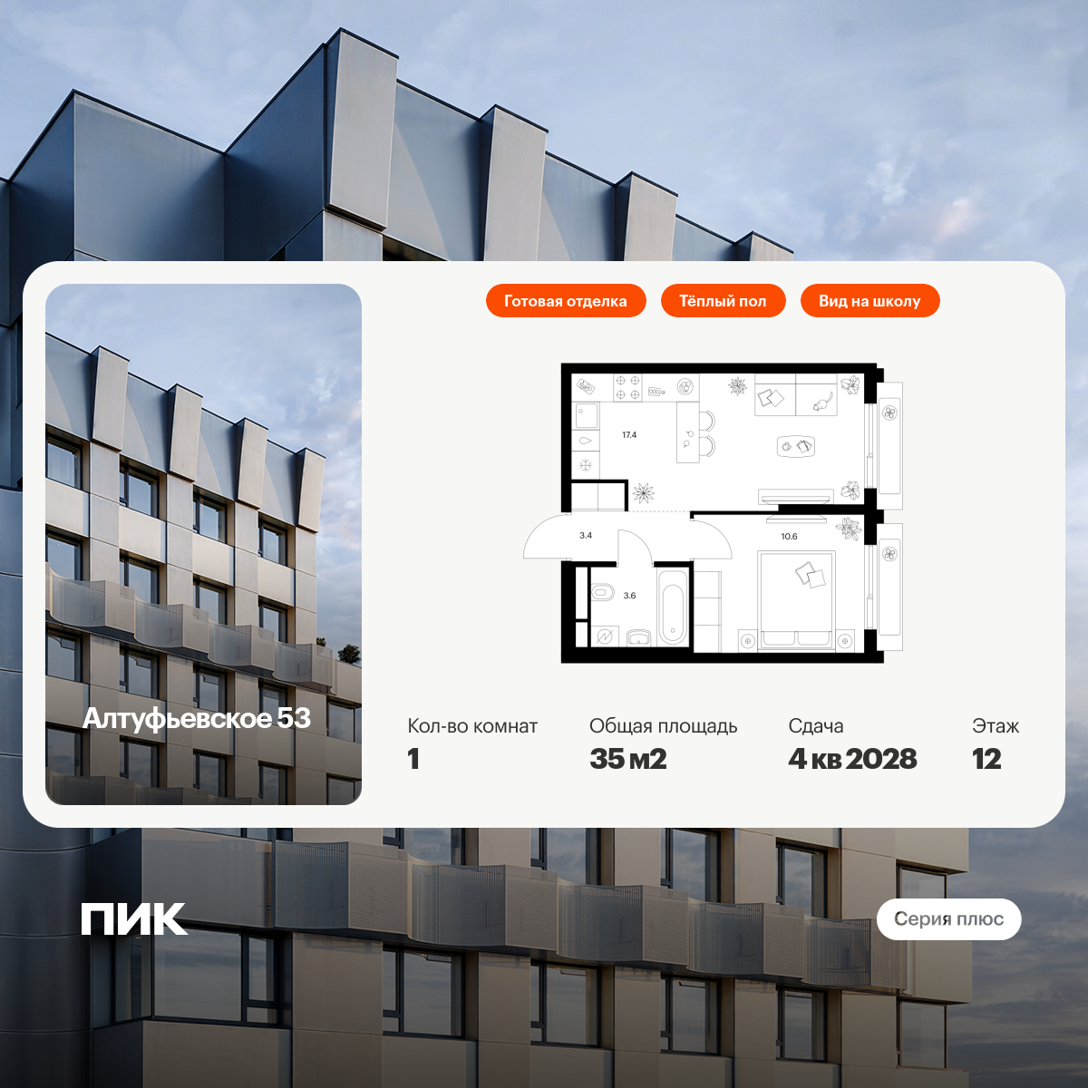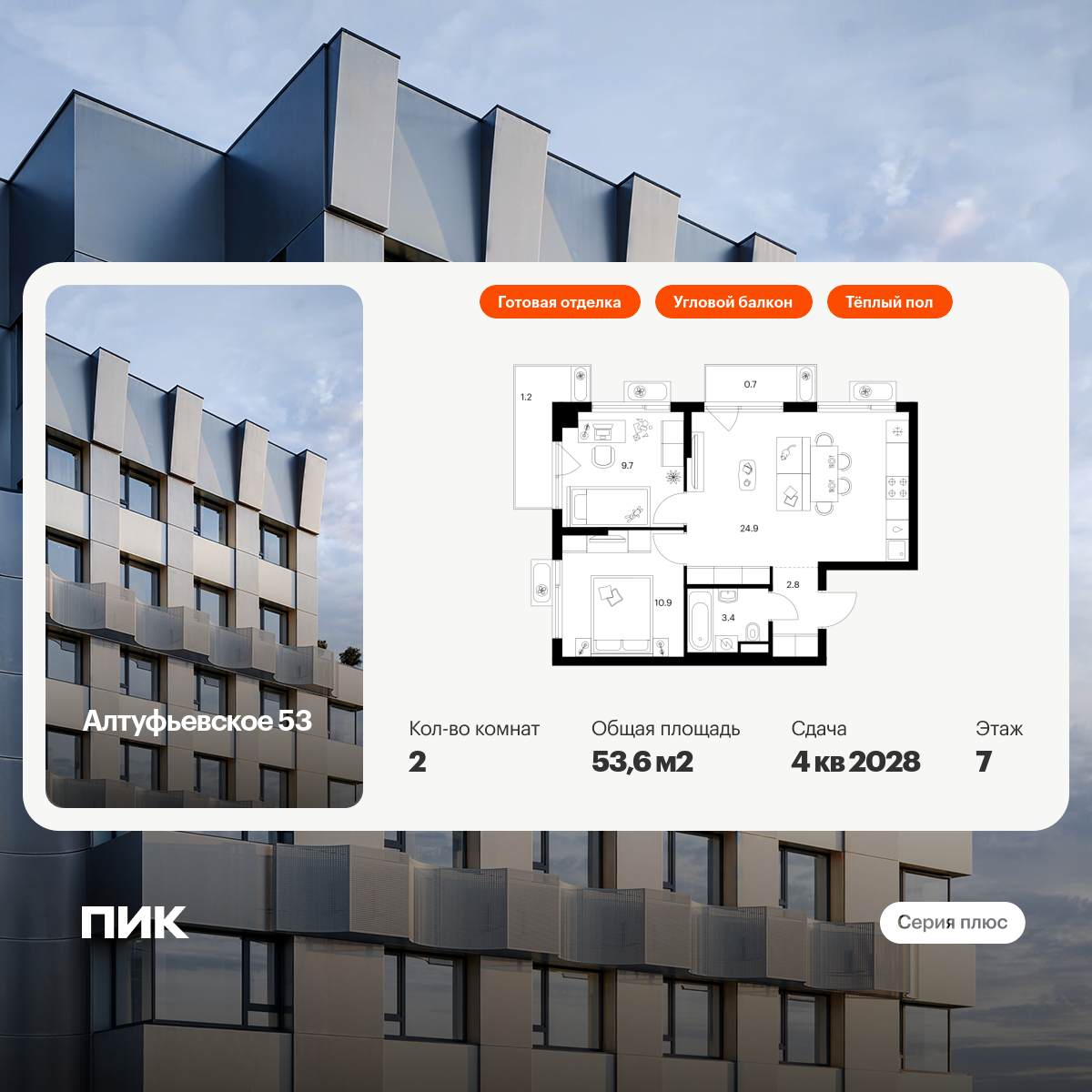 Продаётся 2-комн.квартира площадью 53.40 кв.м на 9 этаже 27 этажного дома (Корпус 4.3, секция 3) проекта ПИК Амурский парк. Светлый просторный подъезд на уровне земли, функциональная планировка, большие окна, с отделкой.